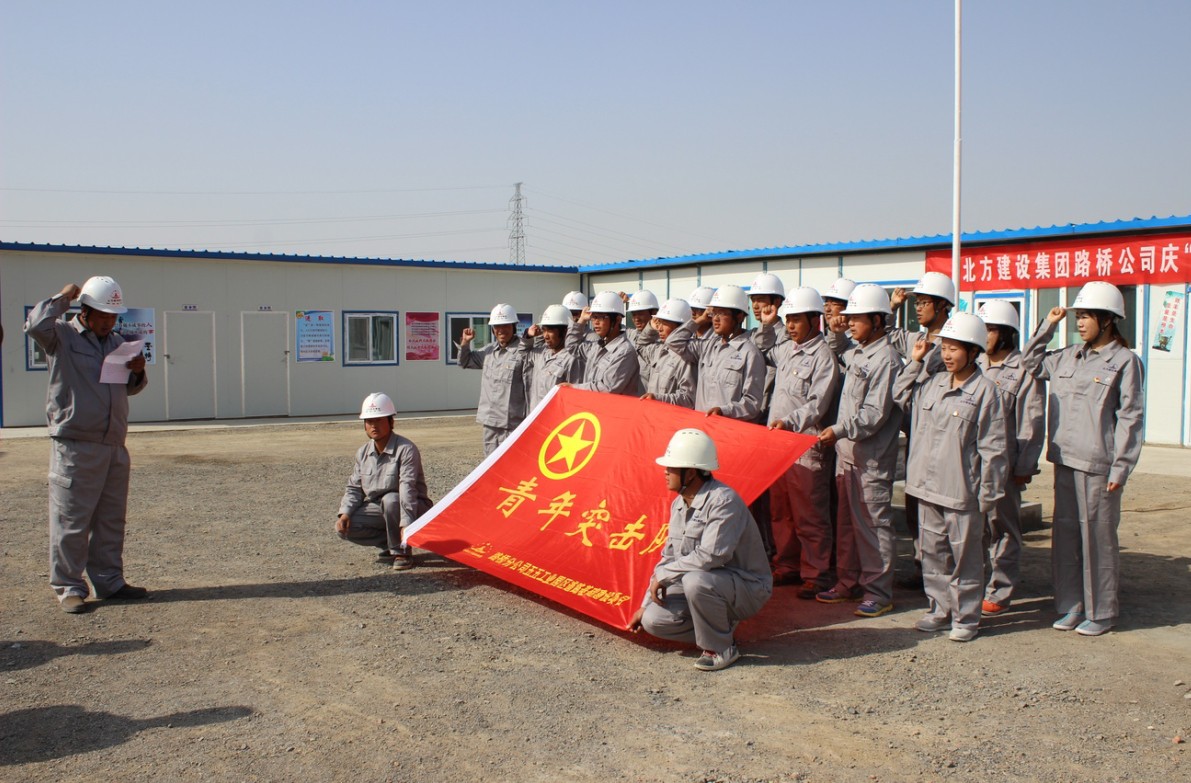 (通訊員 晁震  王曉瑞)“吃苦在前,沖鋒在先,安全優(yōu)質(zhì)完成任務(wù),爭當青年崗位能手,爭創(chuàng )青年文明號;為隊旗爭光,為北方建設集團奉獻青春”! 53日,北方建設集團路橋分公司五五工業(yè)園區道路基礎設施建設項目青年突擊隊成立暨授旗儀式隆重舉行,青年突擊隊隊長(cháng)葛新偉與12名團員青年面對突擊隊隊旗莊嚴宣誓。
