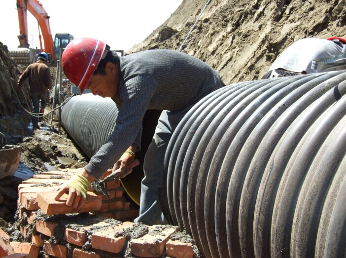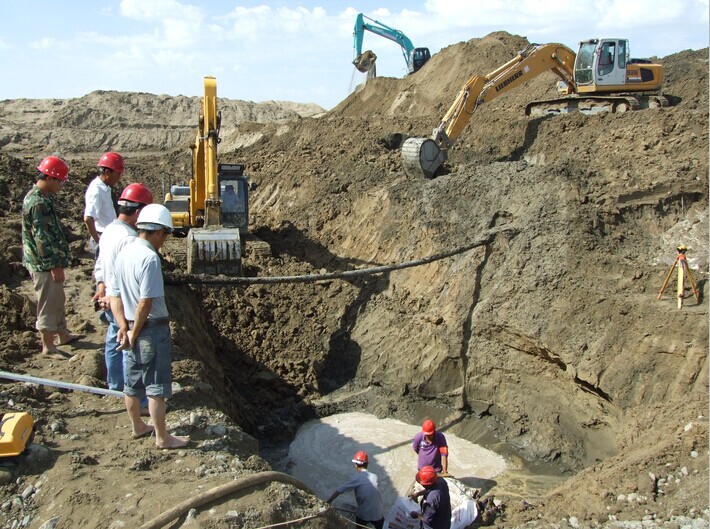 在污水處理廠(chǎng)與緯三路交叉的排污管網(wǎng)施工段處,因施工地處于流沙層,挖掘機在施工開(kāi)挖管溝時(shí),地下水位高,常有地下水滲出,若不解決積水問(wèn)題難以進(jìn)行施工,更影響工程進(jìn)度。為克服這一困難,項目經(jīng)理宋冬平與技術(shù)人員共同協(xié)商,研討制定了專(zhuān)項施工方案,充分利用低洼地勢,在積水較多地段的管溝底部,每隔100米處,設置直徑1.8米,深5米的降水井,用水泵把降水井中積水,排出地面后再進(jìn)行施工,像這樣的降水井已設了5處,全面提高了工程施工進(jìn)度。
