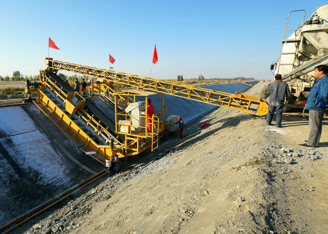 (通訊員 孟慶忠)10月15日,由北方建設集團投資300多萬(wàn)元首次引進(jìn)的一套渠道混凝土襯砌機在一二三團東支干渠防滲改建工地試車(chē)成功。隨著(zhù)機器緩緩的滑動(dòng),半面渠道的墊層石料攤鋪、振搗模襯、混凝土攤鋪、渠面收光、切縫一次成型。