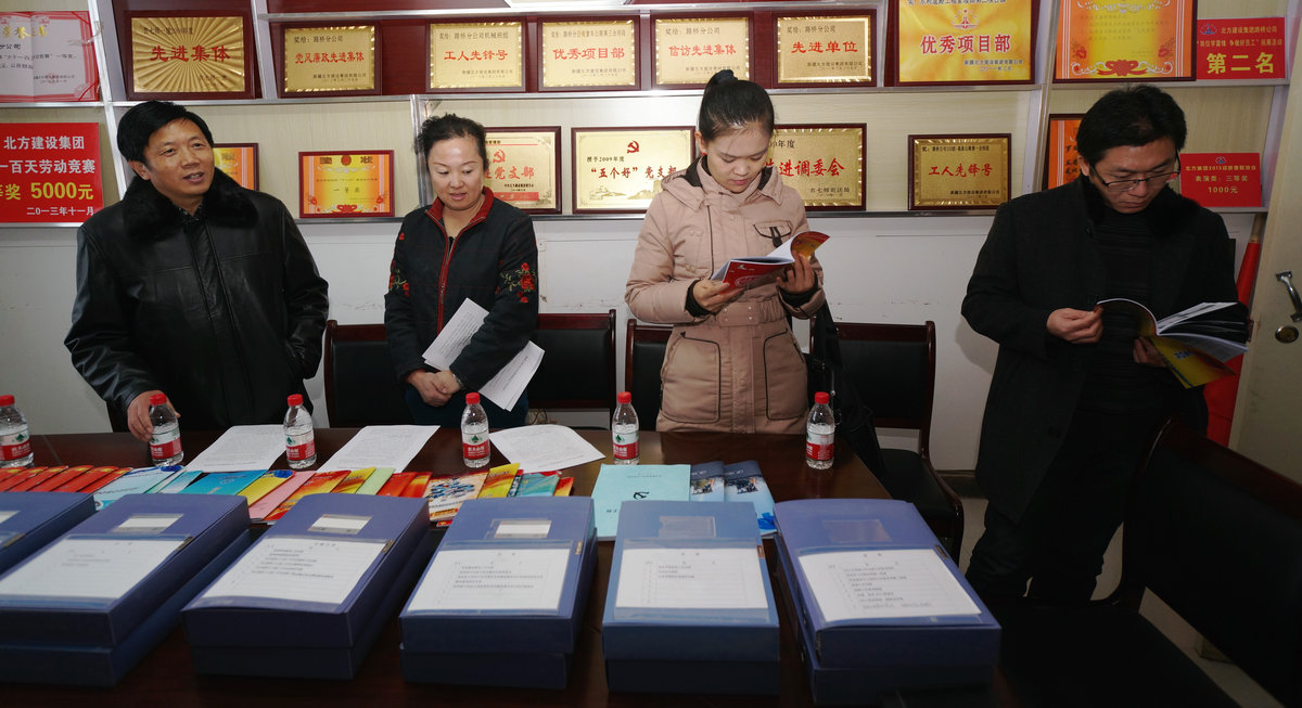 (通訊員:孟慶忠)12月24日,七師宣傳部部長(cháng)王次會(huì )一行3人來(lái)到北方建設集團,對集團公司2013年度宣傳思想文化工作進(jìn)行了年終考核。集團公司工會(huì )主席李桂萍陪同檢查。 在集團公司三樓會(huì )議室,工會(huì )主席李桂萍以課件形式分別就企業(yè)理論武裝、輿論引導、文化建設、精神文明建設、對外宣傳等五項主要工作的開(kāi)展情況向考核組進(jìn)行了詳細的匯報。 在認真查看了集團公司宣傳思想文化工作的檔案資料后,考核...